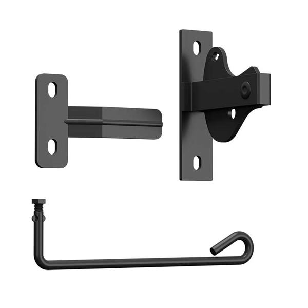 Colorbond Fencing - LATCH KIT (includes D Latch, Striker & Extender) - BLACK (NIGHT SKY) (galvanised steel & powder coated; includes 4 x tek screws)
