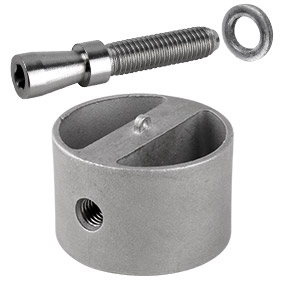 Paris Offset Bracket - ROUND POST SCREW SET - M8 x 50mm machined SS304 Screw with conical head, washer & SS304 threaded 47mm Diameter ROUND BLOCK (suits 50.8mm Diameter Tube)
